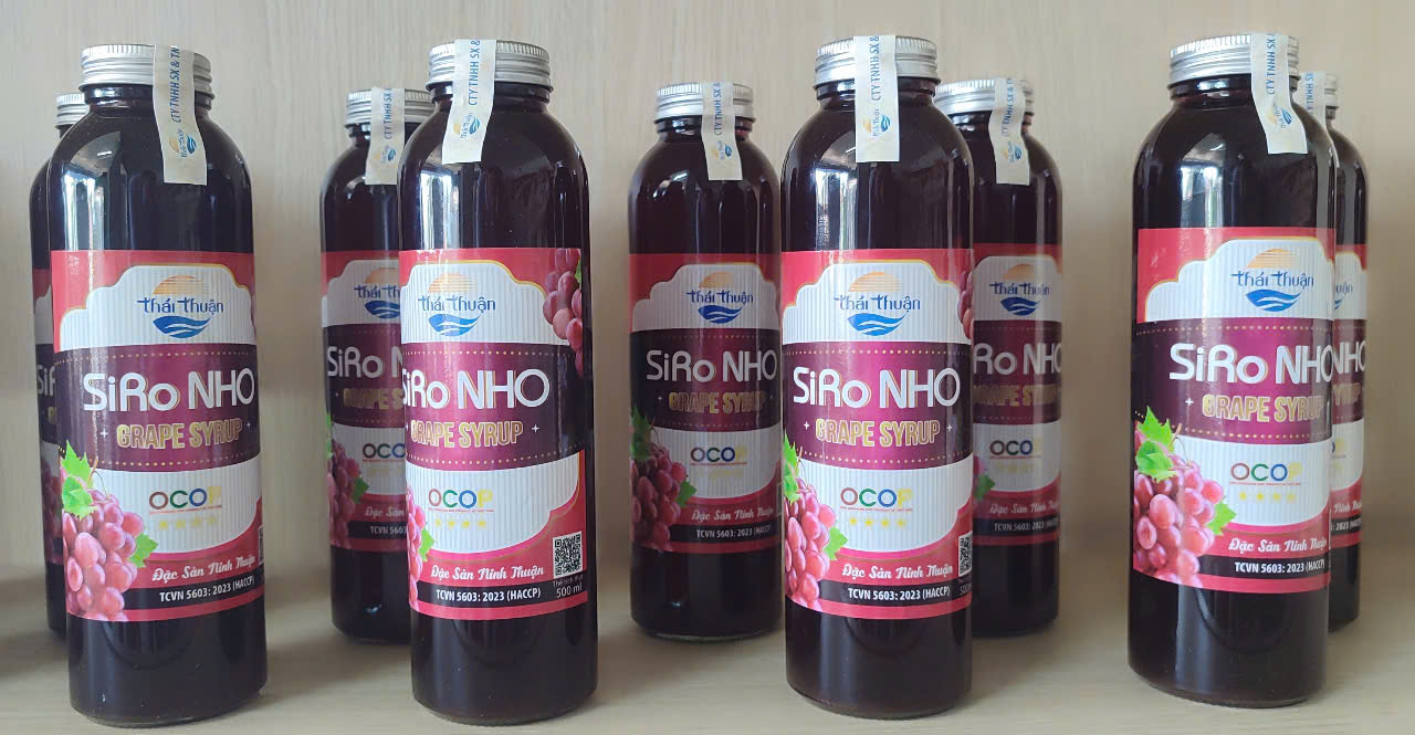 Siro nho là sản phẩm đặc trưng từ vùng đất Ninh Thuận, nơi nổi tiếng với những vườn nho trĩu quả, được sản xuất theo quy trình đảm bảo vệ sinh an toàn thực phẩm (HACCP), mang đến hương vị thơm ngon và giàu dinh dưỡng.